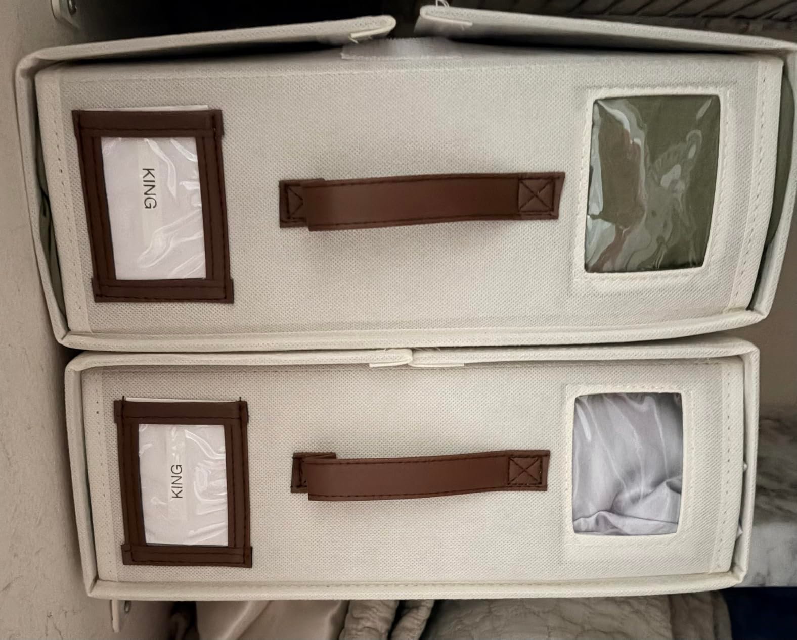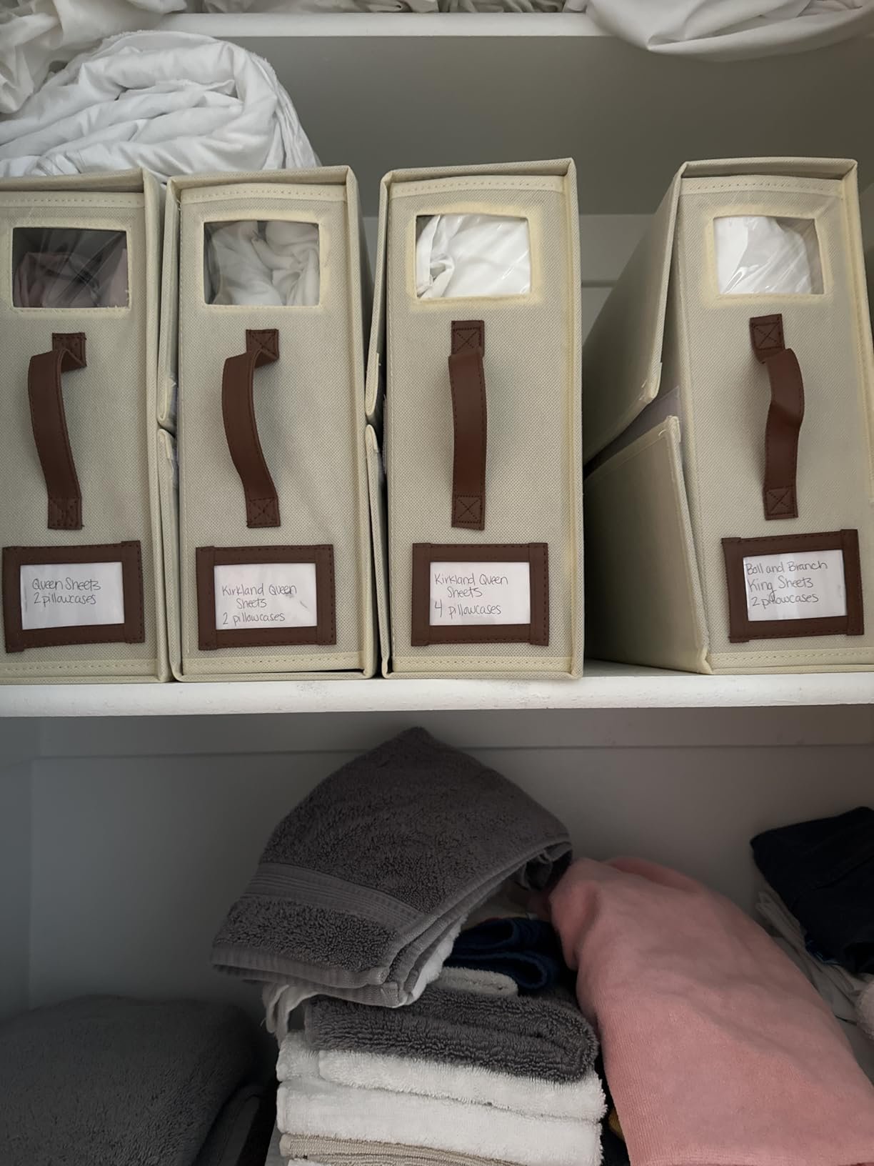 I love these! I can store all my sheets without them getting wrinkled. The boxes are sturdy, and the labels help me stay organized. Definitely made my linen closet look so much better!